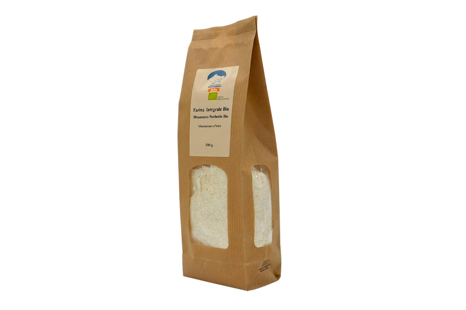 La farina Norberto di grano monococco BIO di Montagnoli Bio è costituita esclusivamente da farina integrale di grano monococco BIO macinata a pietra qualità Norberto: le materie prime sono 100% italiane BIO, da agricolture sostenibili in filiera tracciata.