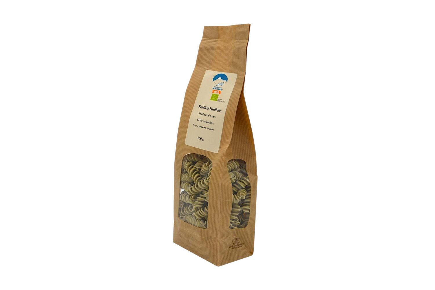 I fusilli di piselli BIO di Montagnoli sono trafilate al bronzo, costituiti esclusivamente da farina di legumi BIO macinata a pietra e acqua sorgiva: le materie prime sono 100% italiane BIO, da agricolture sostenibili in filiera tracciata e gluten free.