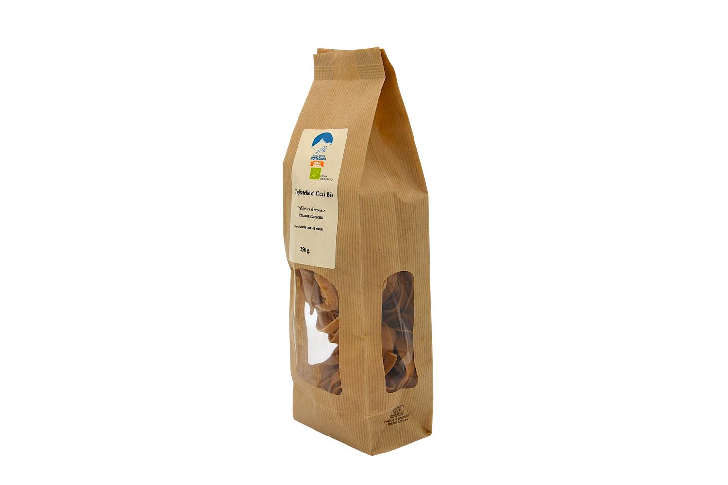 Le tagliatelle ai ceci BIO di Montagnoli sono trafilati al bronzo, costituiti esclusivamente da farina di legumi BIO macinata a pietra e acqua sorgiva: le materie prime sono 100% italiane BIO, da agricolture sostenibili in filiera tracciata e gluten free.