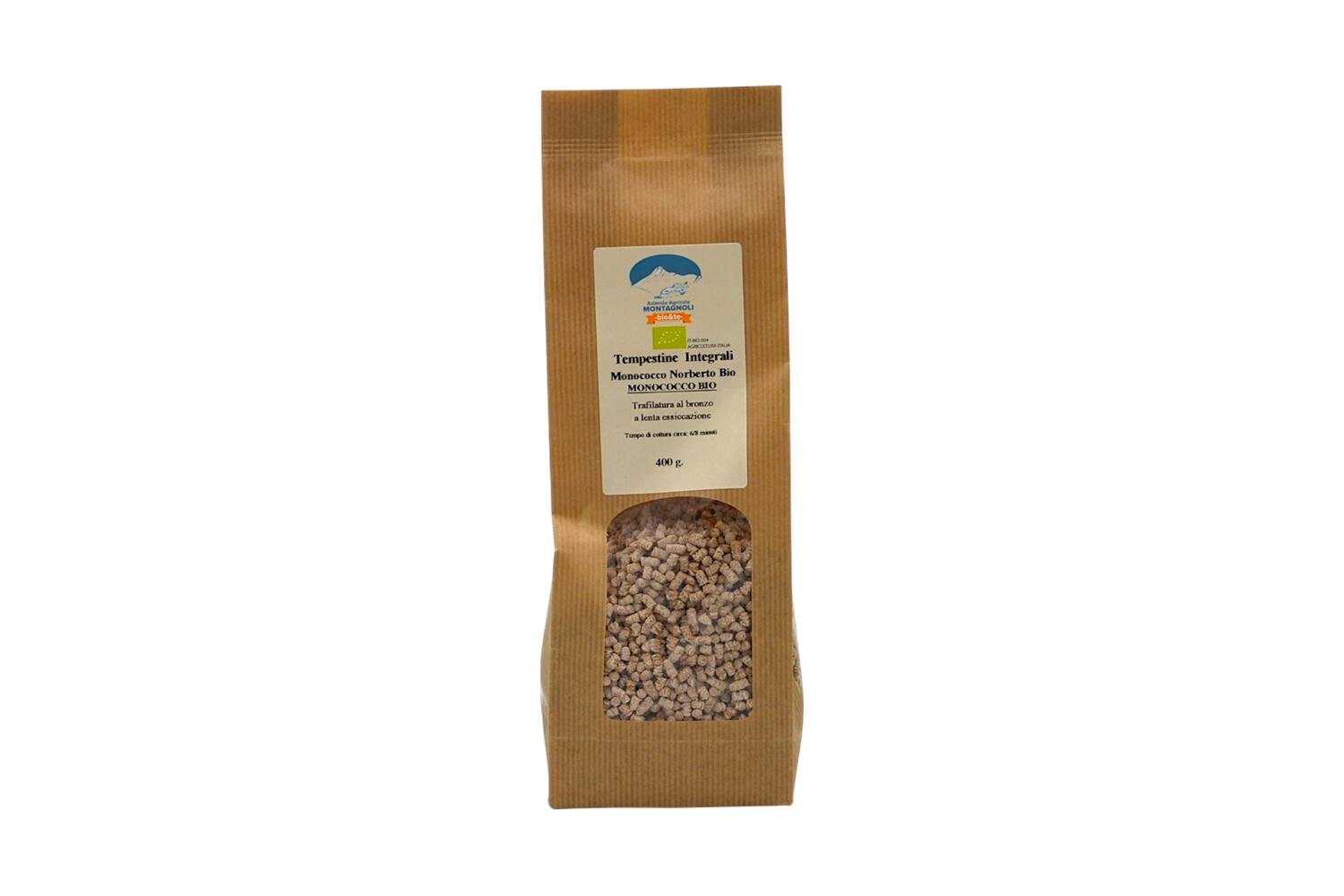 Le tempestine integrali di grano monococco Norberto BIO di Montagnoli Bio sono trafilate al bronzo, costituite esclusivamente da farina integrale di grano monococco BIO macinata a pietra qualità Norberto BIO e acqua sorgiva: le materie prime sono 100% italiane BIO, da agricolture sostenibili in filiera tracciata.